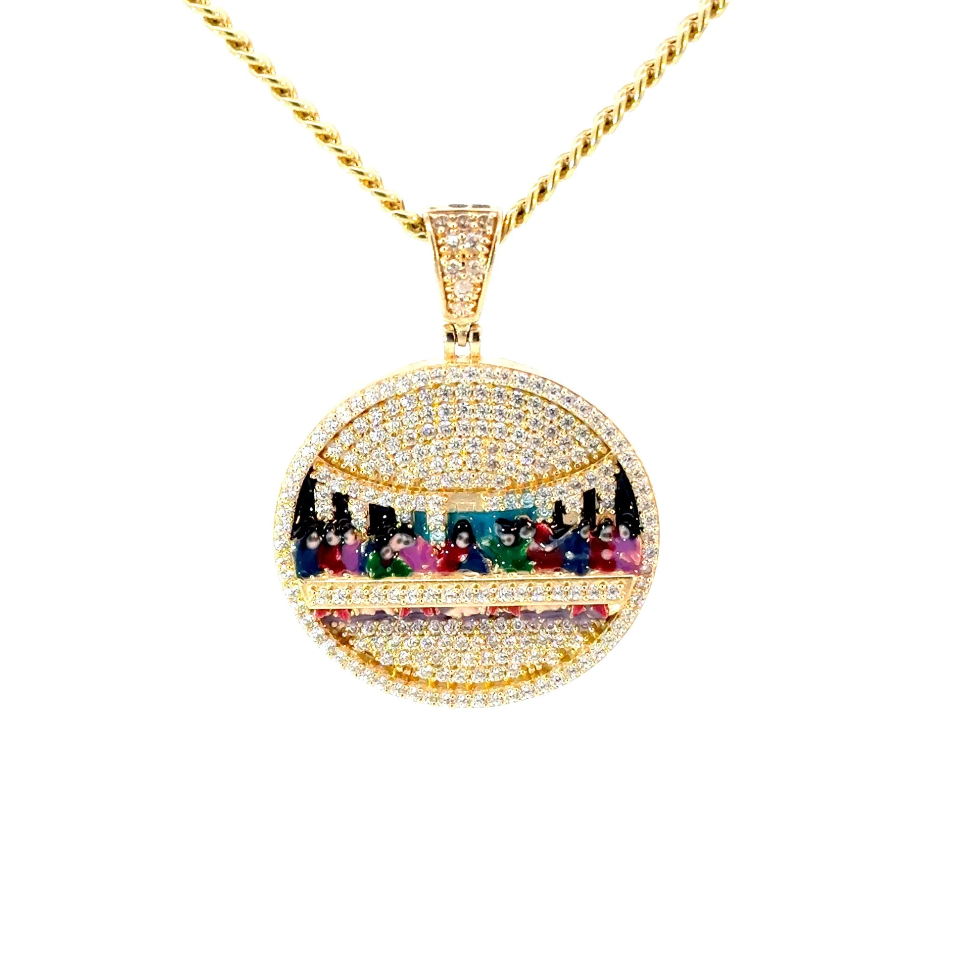 New 14K CZ Last Supper Pendant & Semi Solid Miami Cuban Chain Made of Real 14K Yellow Gold, 100% Guaranteed Gold. Buy with Confidence